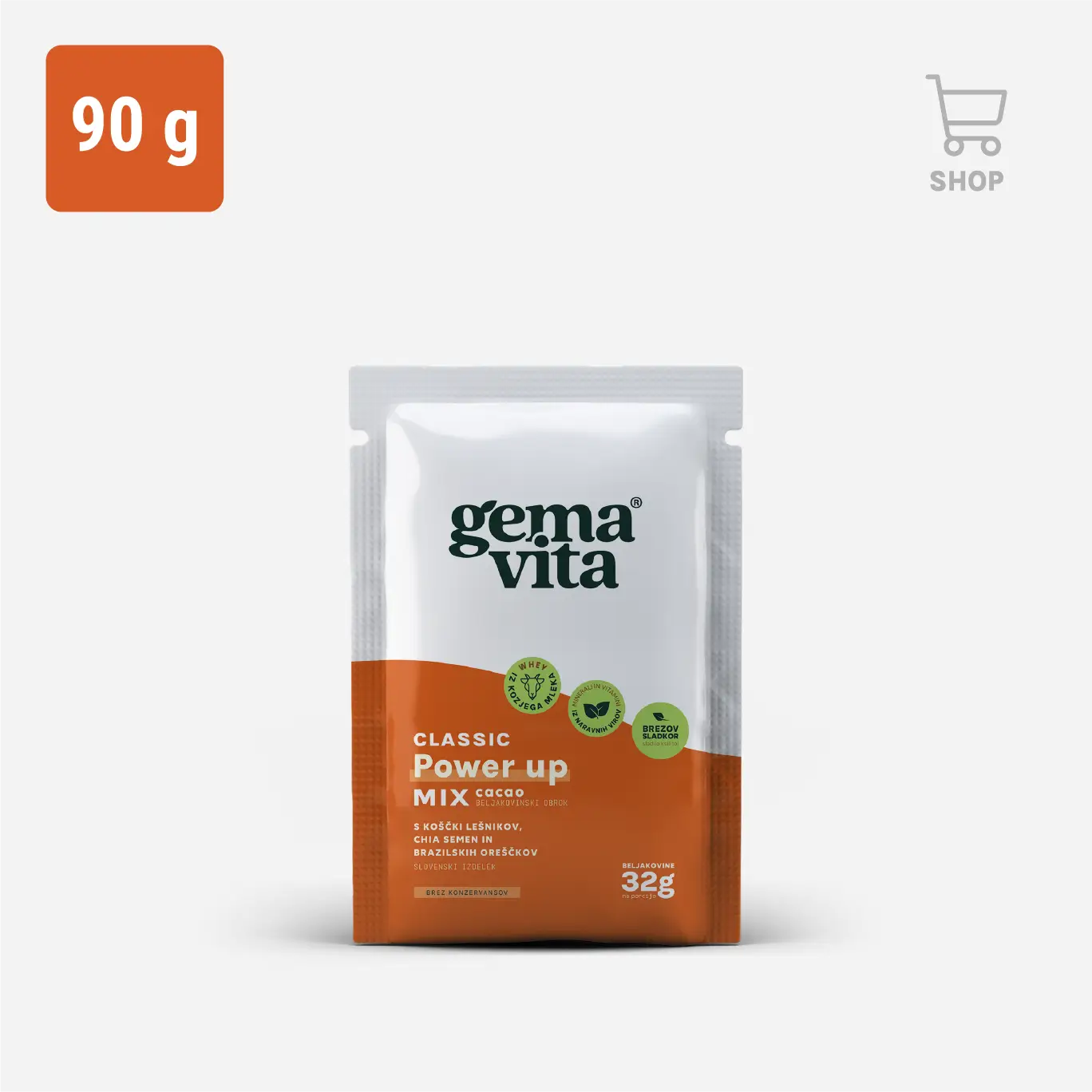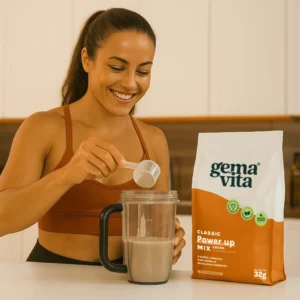 Power up Mix is a premium, nutrient-rich high-protein meal that provides fast support for your body. It contributes to the normal function of the immune system and to the protection of cells from oxidative stress. Besides this, it contributes to the recovery of normal muscle function after highly intensive or long-lasting physical exercise leading to muscle fatigue and the depletion of glycogen stores in skeletal muscle.