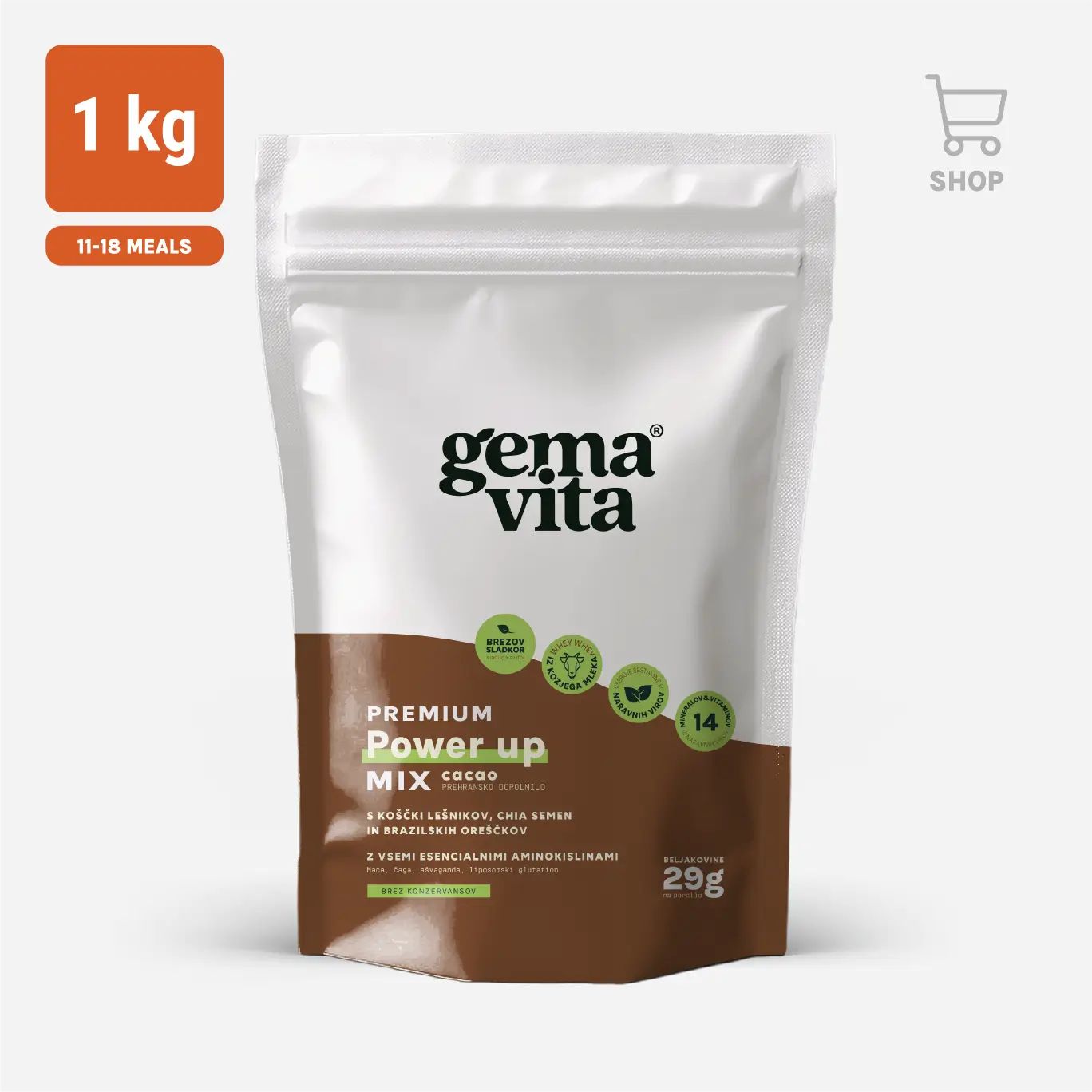 Power up Mix high protein meal contains essential amino acids, electrolytes, minerals, and vitamins that contribute to normal body function. The vitamins and minerals in the meal help maintain normal immune system function during and after intense physical exercise. The high content of complete proteins and fiber ensures a long-lasting feeling of satiety.